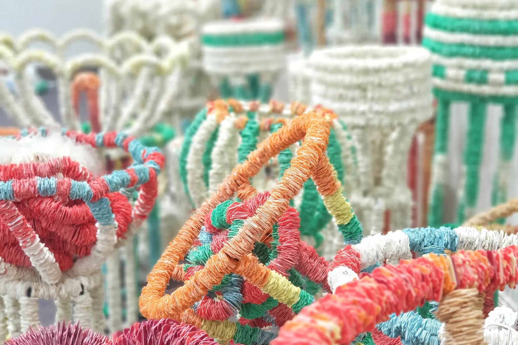 Her work which transforms millions of discarded plastic bread tags into art, invites you to slow down, look closely and reflect as each tiny piece of plastic contributes to a much larger story of consumption, community and care.