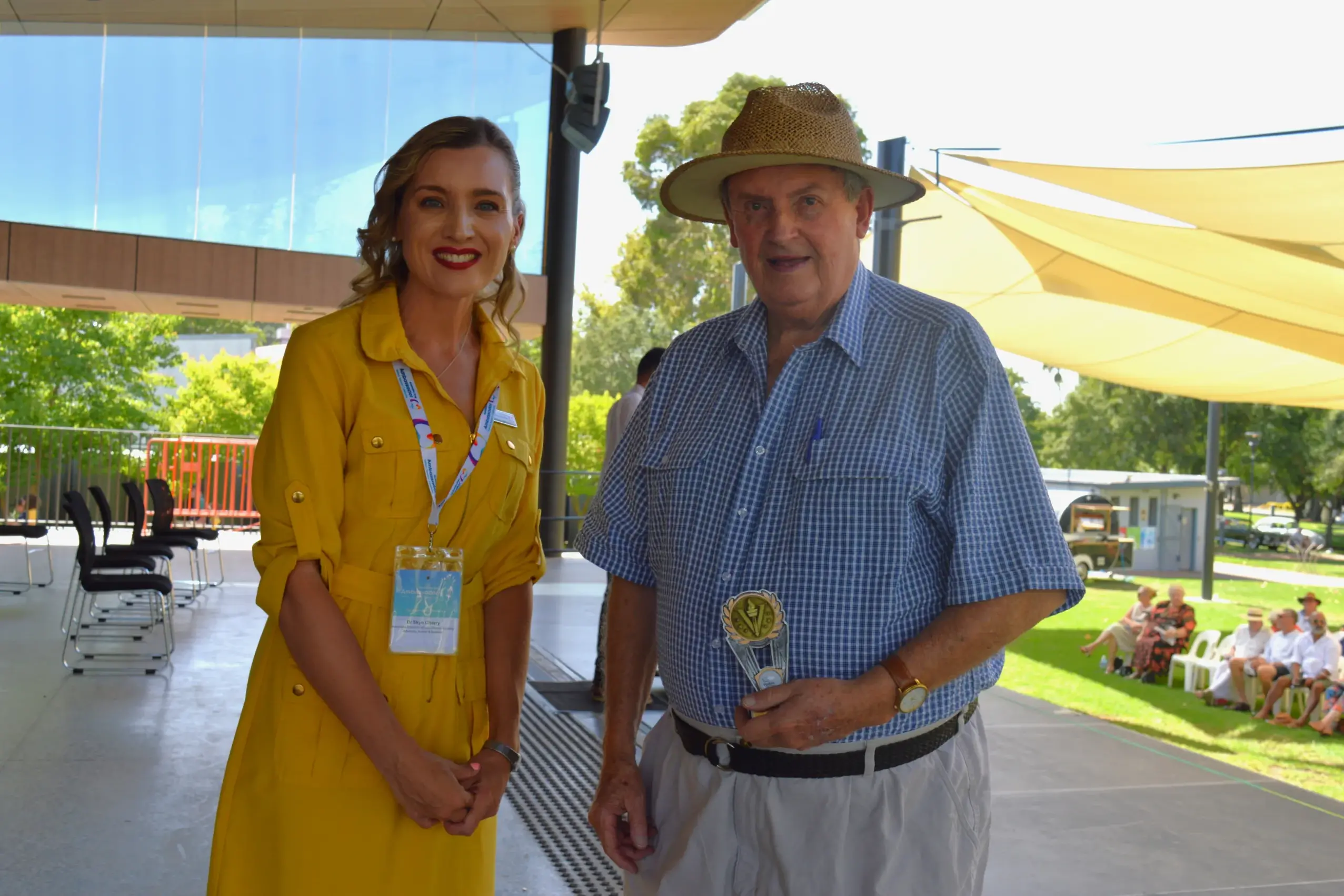 Australia Day ambassador Dr Skye Charry presented Greg Morrissey OAM his Lifetime Achievement Award.